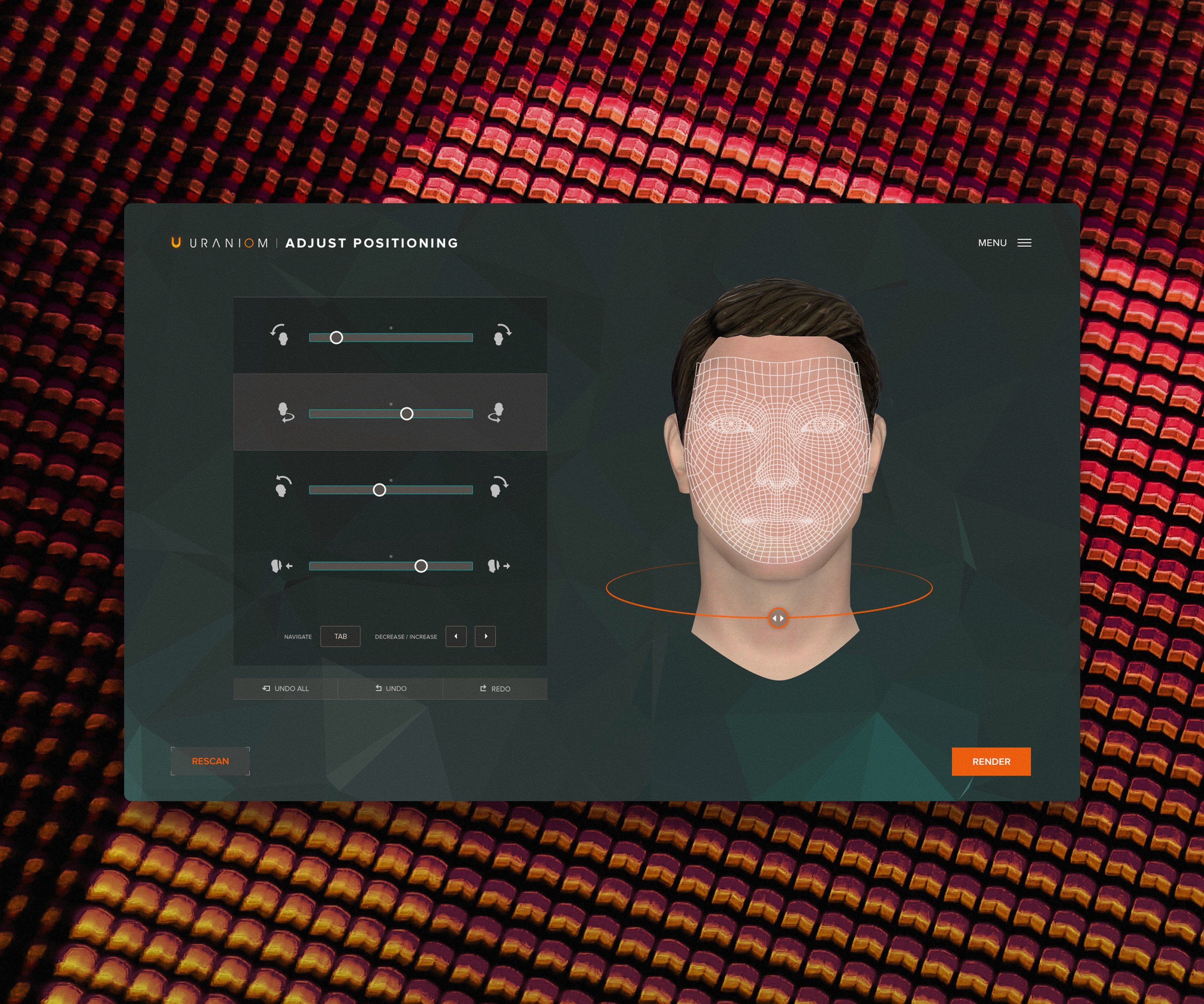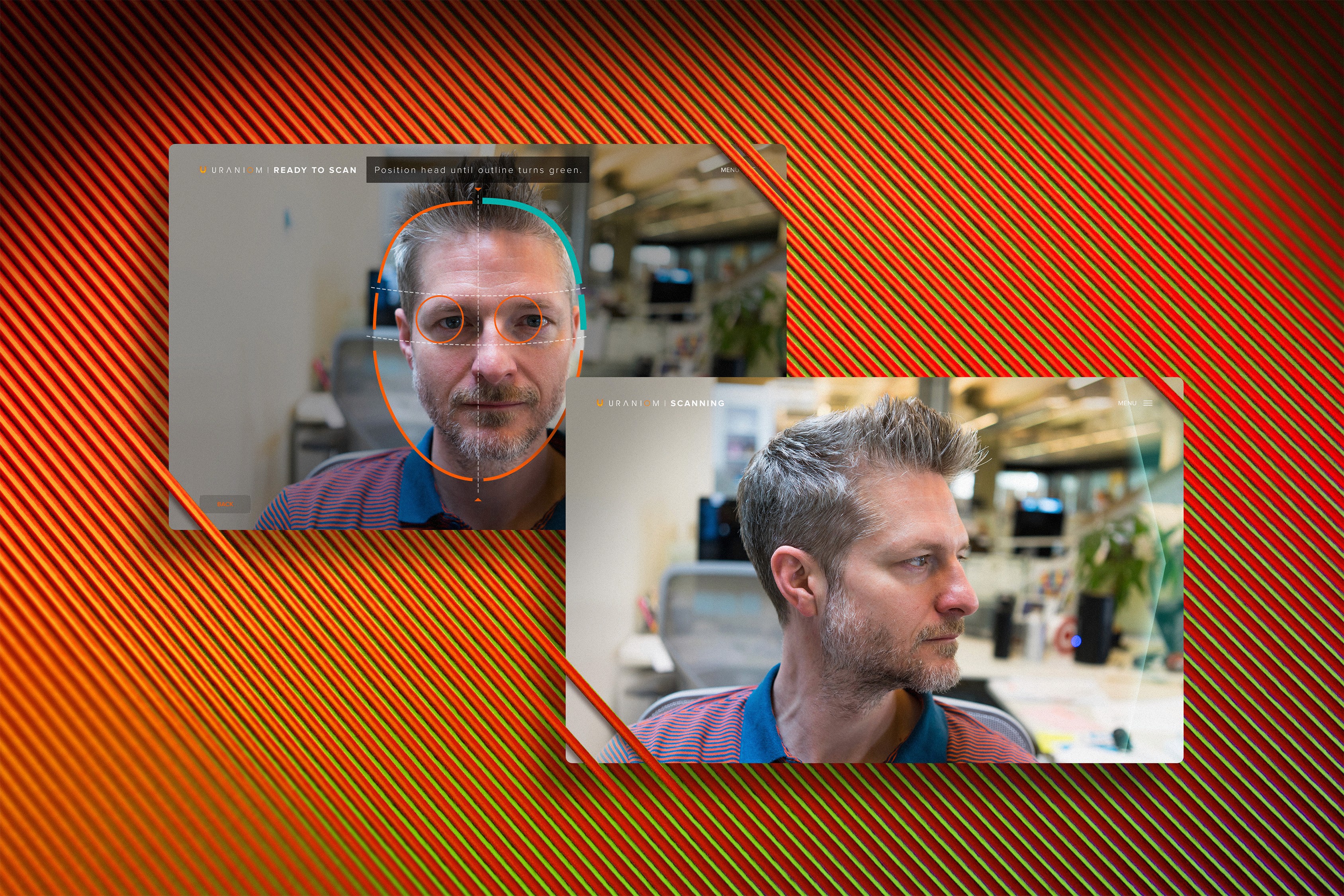 I worked through a variety of visual styles for the user interface, ultimately landing on a more minimal theme meant to evoke a loading environment before a game bursting into action. Ethereal, floating and avoiding obstruction to the 3D faces themselves which were the hero of the experience and supportive of the effortless scanning process we provided.