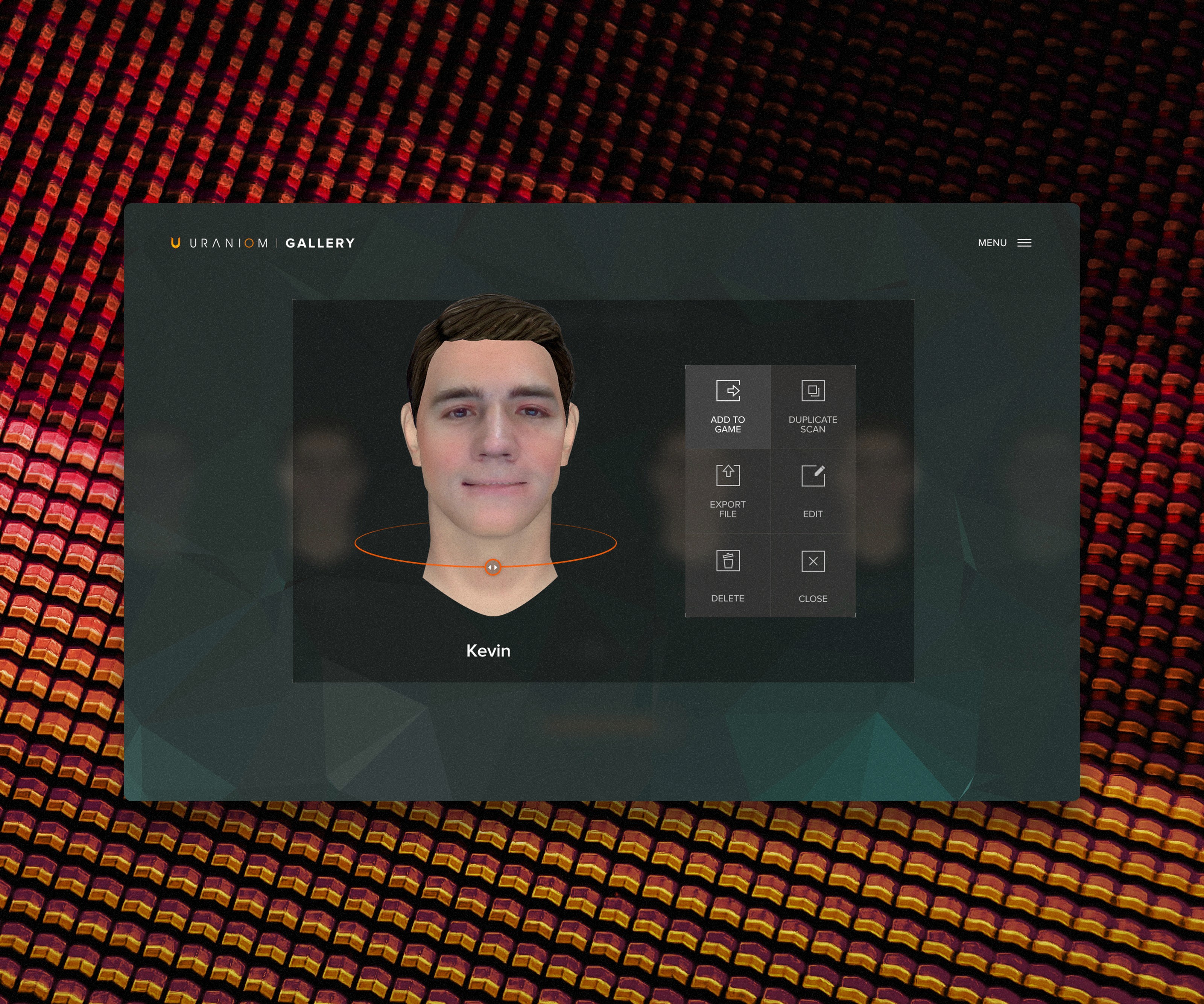 To initiate the scan the user would move their head into the provided mask on the screen changing in both size and color to indicate accurate placement within the space. Upon the full mask changing the scan would begin after a countdown. To avoid unnecessary eye movement during the scan we strove to provide directional sound and subtle visual motion on the screen to direct the user when to look left or right. Upon completion the 3D face would begin generating taking the user one step closer to entering their eligible game of choice.